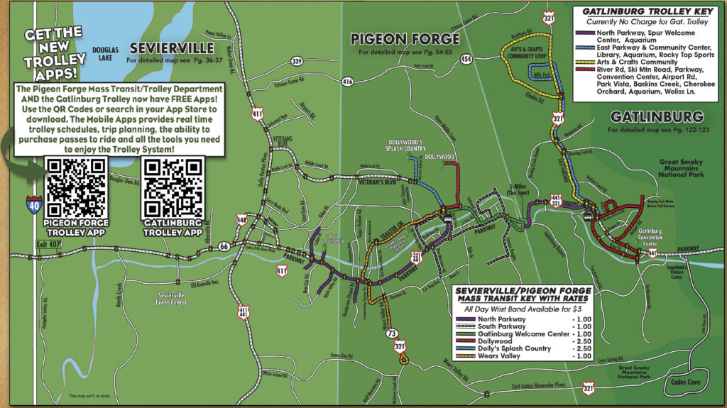 Page Summary: Area Map of the Great Smoky Mountains Region including Sevierville, Pigeon Forge and Gatlinburg with High Resolution download.