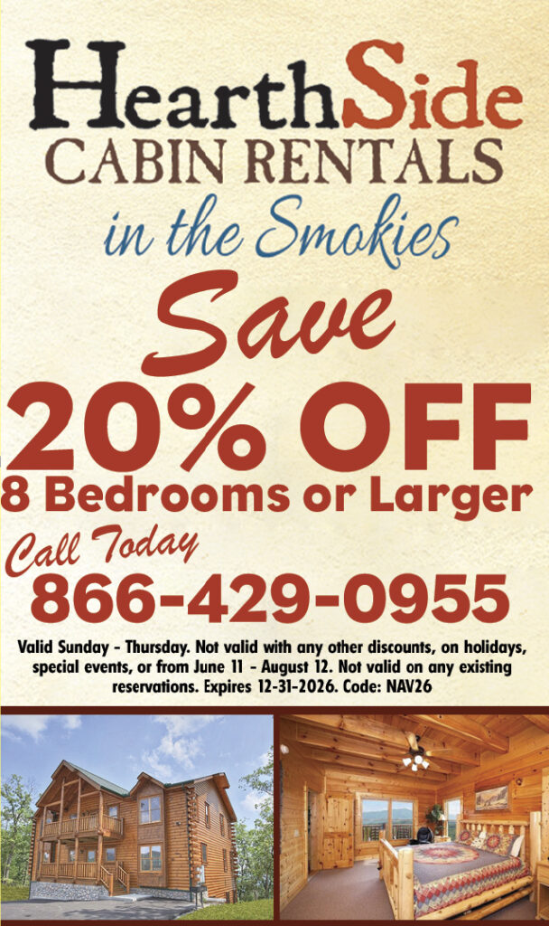 Save up to $300 on your family’s next vacation in the Smokies by staying with HearthSide Cabin Rentals. With the Freedom Fun Pass, guests to HearthSide Cabin Rentals will enjoy free tickets and discounts to many of the area’s popular attractions and restaurants including Lumberjack Feud Dinner and Show and Ripley’s Aquarium of the Smokies each night of their stay. HearthSide Cabin Rentals has built its company around making customers feel as if they have a friend in Tennessee!
